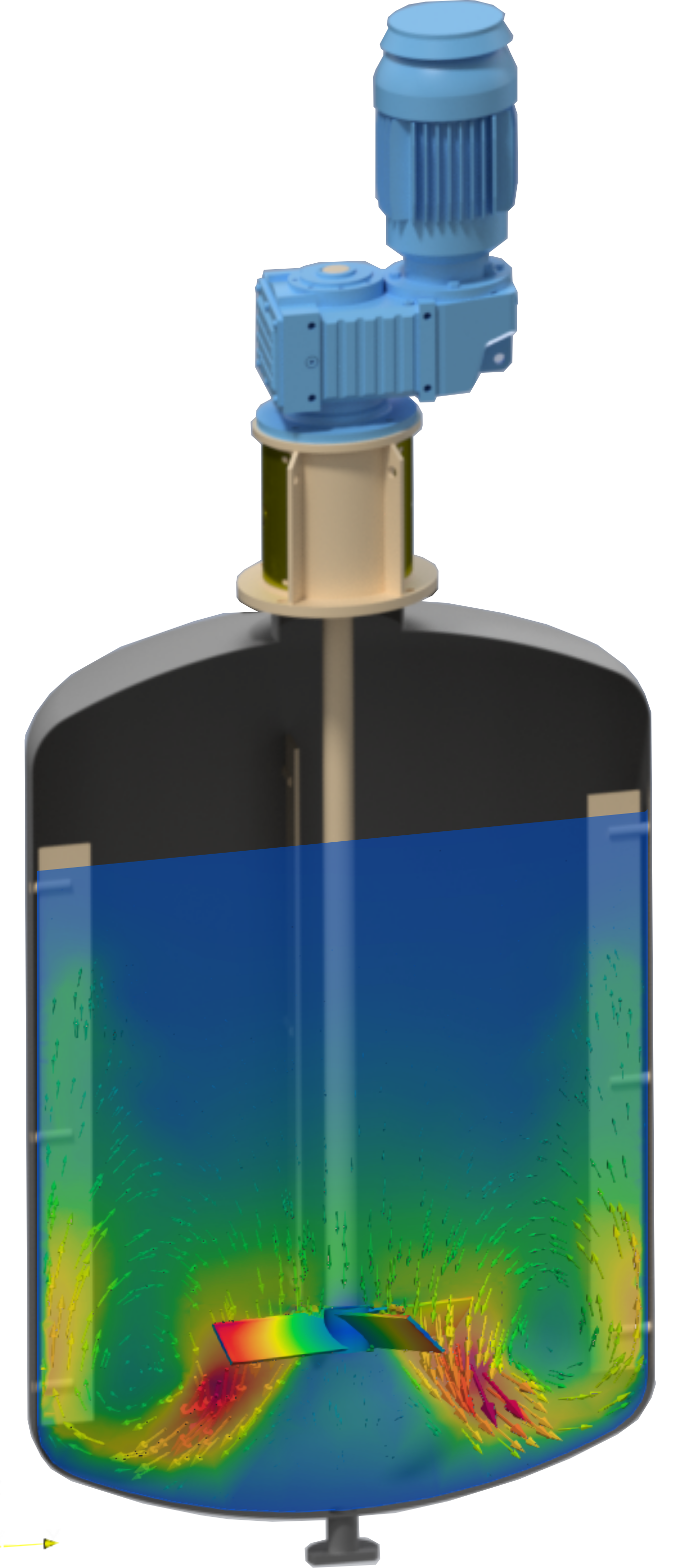 A análise por Fluidodinâmica Computacional – CFD, permite através do uso de computadores de grande capacidade de processamento, simular o comportamento e as condições de escoamento dos fluídos. Na agitação de fluidos esta ferramenta essencial, provem informações como: